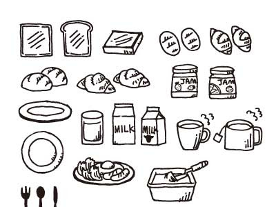 イラストデータ販売 パン ベーカリー あしらい ペン画 手書き イラストデータ 公式 イラスト素材サイト イラストダウンロード